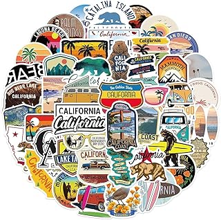 California Stickers - 50 Stück California Sticker Pack - Cool Yosemite, Los Angeles Decals - Wasserfest, UV-Beständig - Reiseaufkleber für Helm, Wasserflasche, Ski, Gepäck - GlibertVillageGoods