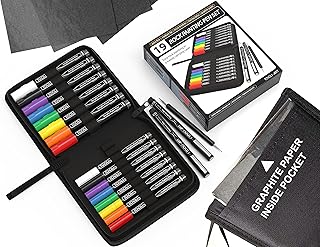 TOOLI-ART Rock Painting Starter 19 Stiftsatz im Reißverschlussetui. 16 Acrylstifte 2 Mikrofinelinisierer, Transparentstift, Graphit-Carbon-Transparentpapier. Ungiftig