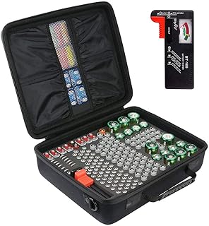 Khanka Batterie Aufbewahrungsbox mit Batterietester (BT168).Hart Tasche Hält 178 Batterien AAA AA Linthum 9V C D mit Handschlaufe.(Kommt mit Batterietester)