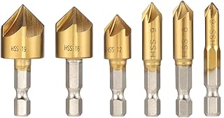 tiopeia 6 Stück 90° Kegelsenker Set, HSS Sechskant Senker Kit, Fasefräser Enthalten Loch Reibahle, Kegelsenker für Holzbearbeitungsbohrer 6mm-19mm
