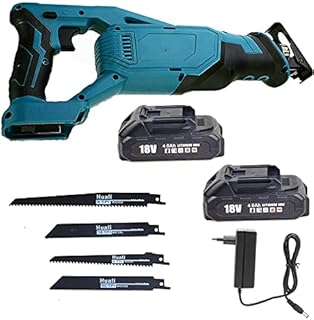 18V Bürstenlos Akku Reciprosäge, Säbelsäge für Makita mit 4 Stück Sägeblatt variable Geschwindigkeit von 0 bis 3000 SPM, für Holz & Metall & Aluminium(2X 4,0Ah Akku und Ladegerät)
