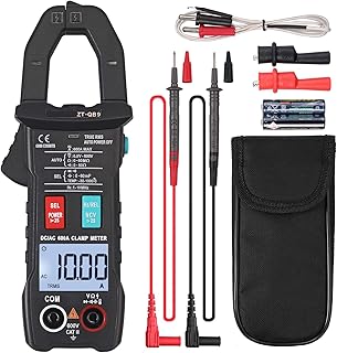 CAMWAY Digitales Zangenmessgerät TRMS Automatisches Amperemessgerät 6000 Counts Multimeter mit Taschenlampe, AC/DC Strom, Spannung, Durchgangs-Diode, Temperaturfrequenz, Null-/Feuerdraht-Tester
