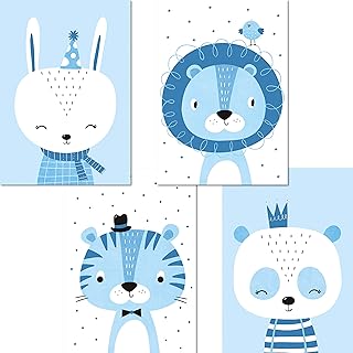 LALELU-Prints | A4 Bilder Kinderzimmer Deko Junge Mädchen | Zauberhafte Tiere nordic blau | Poster Babyzimmer | 4er Set Kinderbilder (DIN A4 ohne Rahmen)