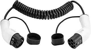 EV + Elektrofahrzeug-Ladekabel - Typ 2 auf Typ 2-3 Meter PHEV Ladekabel - 1-Phase 32A(7,2 kW) Schwarz Spirale- Gratis Tragetasche CE IP55
