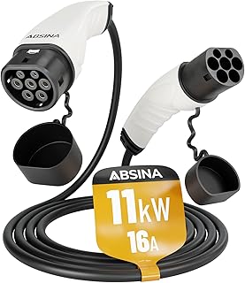 ABSINA Typ 2 Ladekabel Elektroauto - 11kW | 16A | 5 Meter | Typ 2 Kabel zum Laden für Hybrid & E Auto an Ladesäule IEC62196-2 - Typ2 Elektrofahrzeug Ladekabel 3 phasig mit IP55