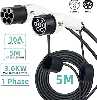 MAX GREEN EV/Elektrofahrzeug Auto & Plug-in Hybrid Ladekabel Typ 2 auf Typ 2, | 16Amp | Maximale Ausgangsleistung 3,6 KW | Einphasig | 5 Meter |