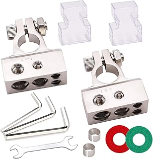 Tnisesm 1 Paar Batterie Klemmen Stecker, 0/4/8/10 Gauge, Heavy Duty TopPost AMP Auto positive negative Batterieenden mit Schabern,klare Abdeckungen,Spezialwerkzeuge,Korrosionsschutzscheiben DPN-36G+GH