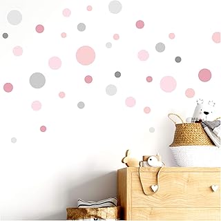 Little Deco 60 Punkte Wandtattoo Wandaufkleber Kinderzimmer Mädchen Kreise rosa grau Wandsticker Set bunt Schlafzimmer Dots Wanddeko Babyzimmer DL674-Z1