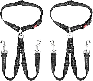 AUTOWT Doppelter Hunde-Sicherheitsgurt, für Auto, Kopfstütze, Sicherheitsgurt, kein Verheddern, Hundeleine, verstellbar, elastisch, für 2 Hunde