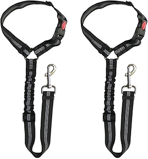 Genliloor Verstellbarer Sicherheitsgurt für Hunde, mit elastischem Bungee-Puffer, robuster Kopfstütze, Sicherheitsgurt, für Hunde, Fahrzeuge, Reiseleine, schwarz, 2 Stück